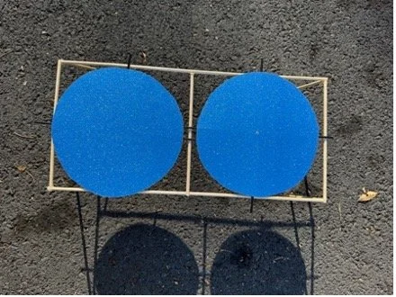 To test my prototype, I made makeshift “bowls” for a size reference by carefully measuring and cutting circles out of thick paper to match the bowl’s diameter. Then I attached thin stirring straws to stick out from the edges of the circles to model the dog bowl rims, which will rest on my structure to support the bowls.