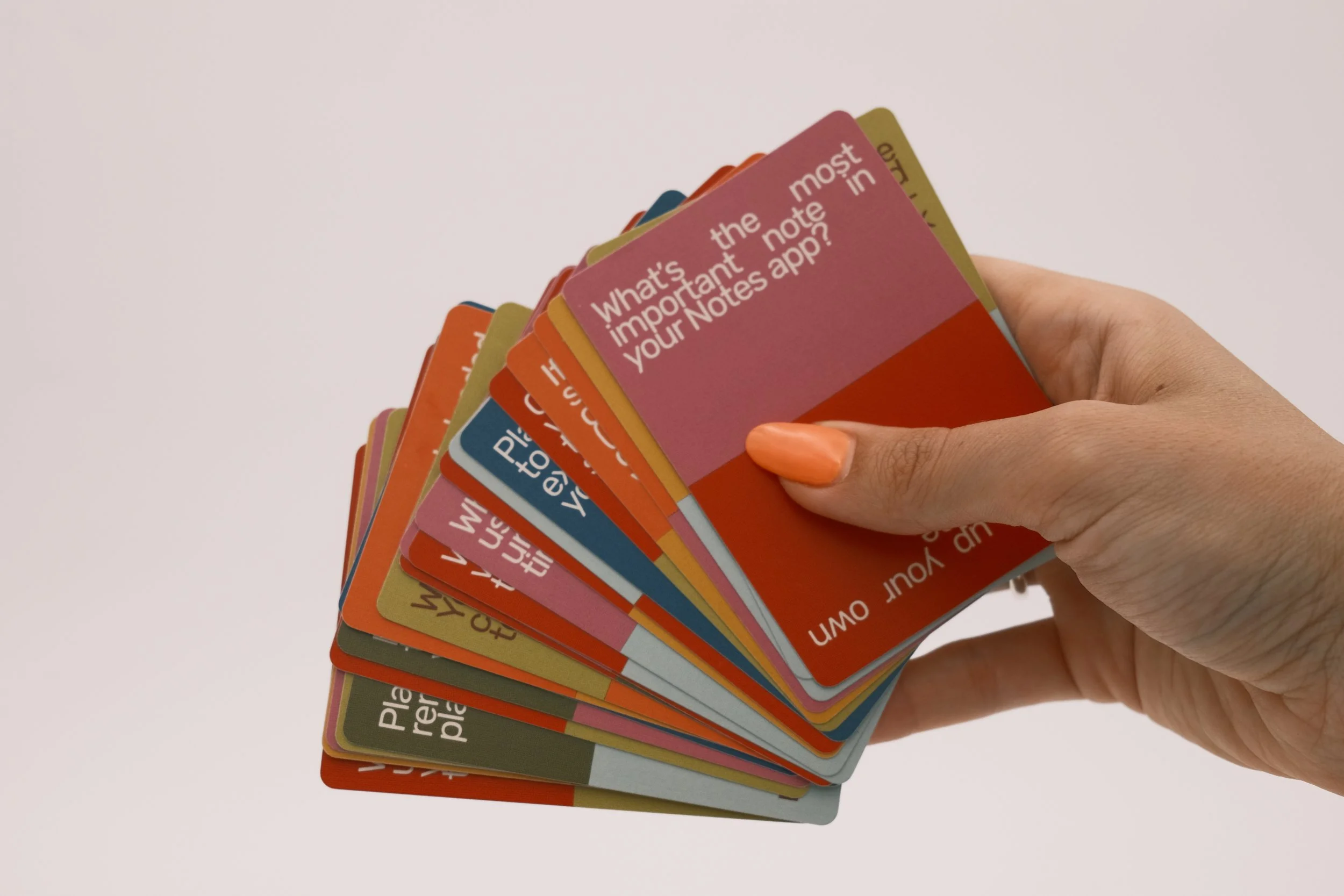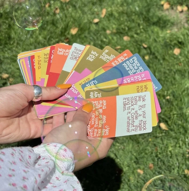 Some cards ask players to pose their own questions to their playmate to encourage organic connection and enable many rounds of play (without conversations becoming repetitive).